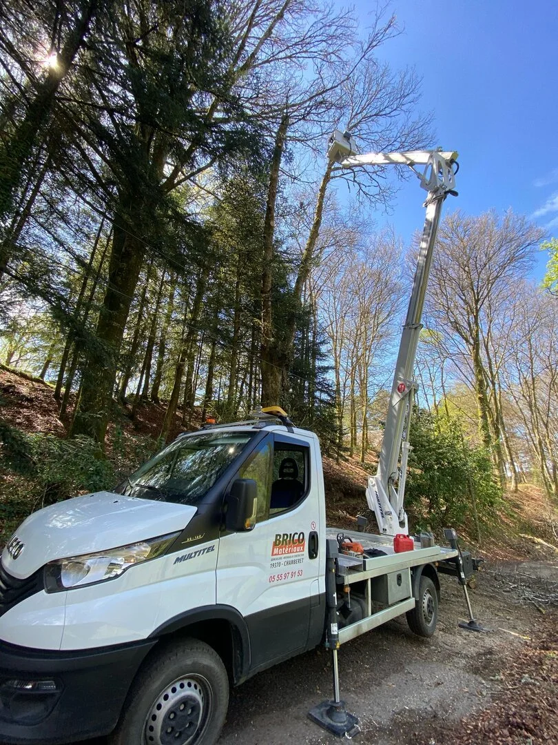 Implantés à Chamberet (19370), nous accompagnons particuliers, collectivités et professionnels pour tous travaux d’élagage d’arbres en Corrèze.